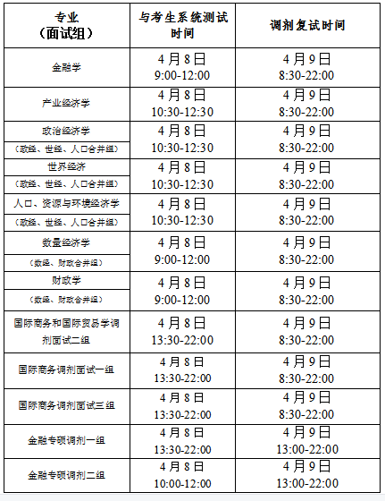 前进行系统调试,系统测试时间和复试时间为: