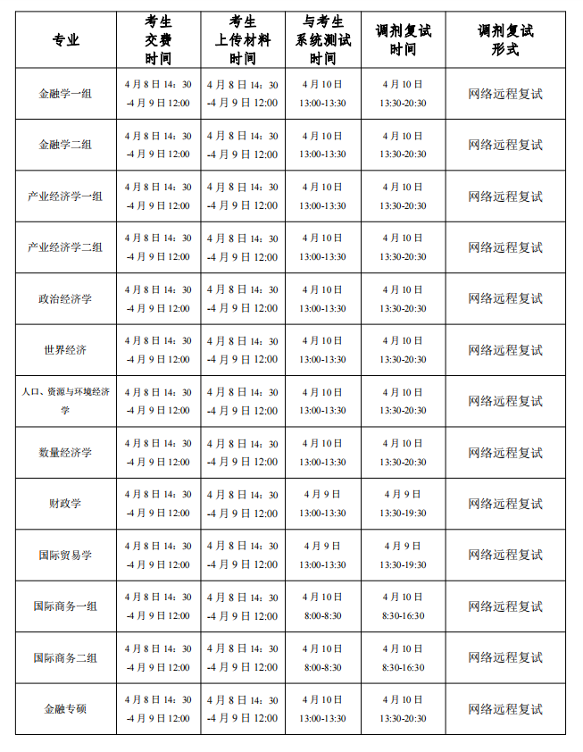 3. 考生应保持手机通讯畅通,方便工作人员联系,提前进行系统调试,系统测试时间和复试时间如下: