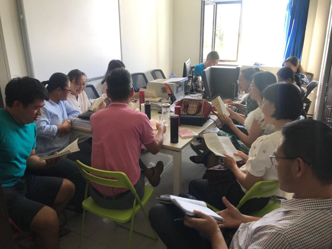 按照学院党委“不忘初心、牢记使命”主题教育相关部署安排,从9月16日至9月30日,学院各党支部每周组织安排半天本支部党员集中学习,原原本本通读《习近平关于“不忘初心、牢记使命”论述摘编》《习近平新时代中国特色社会主义思想学习纲要》和党章,深入学习习近平新时代中国特色社会主义思想,跟进学习习近平总书记最新重要讲话和对教育工作的重要指示批示精神,领悟初心使命,强化党员意识,增强“四个意识”、坚定“四个自信”、做到“两个维护”。在9月的最后一周,各支部在学习的基础上,畅谈学习体会,深入检视问题。
