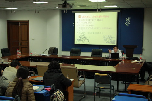 此次学术论坛分上下两场。上半场主旨发言人有: 王继平教授《追溯型忠诚折扣意味着更低价格吗?》,吕明元教授《产业结构生态化演进研究》,周桂荣教授《 WTO-SPS 特别贸易关注对我国食品安全标准体系构建的影响》,王炳才教授《服务业创新与制造业创新比较研究》,李海伟博士《异质性与“金砖国家”的混合型直接投资问题研究》。 五位老师清晰明了、深入浅出的报告,让在场师生很快融入学术交流的氛围中。其中吕明元老师的报告内容,已在《世界经济研究》、《产经评论》等经济学期刊发表。