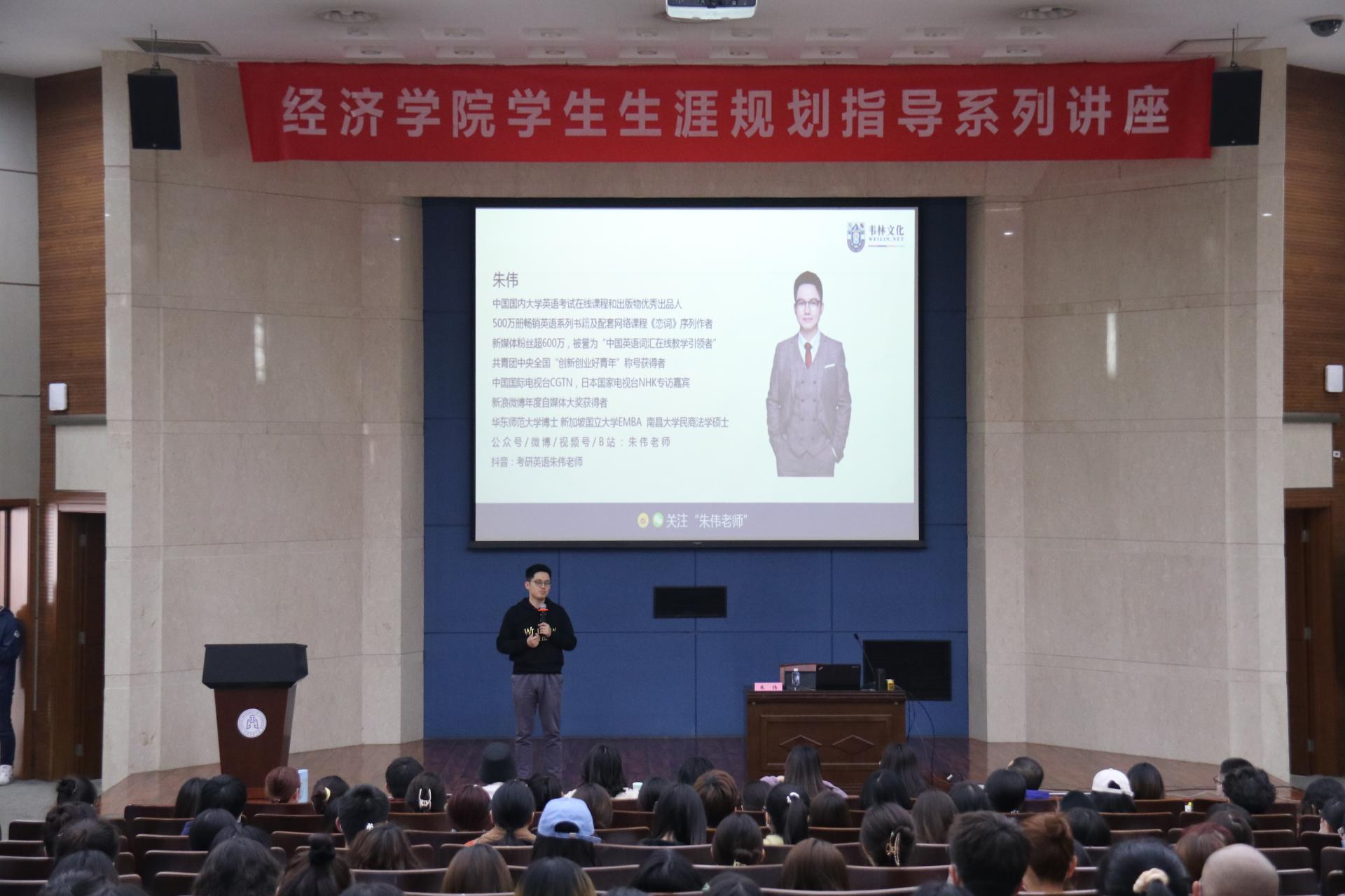 邀请考研英语辅导读物“恋词”序列作者朱伟开展考研英语学习方法面授讲座,300余名学生参加。