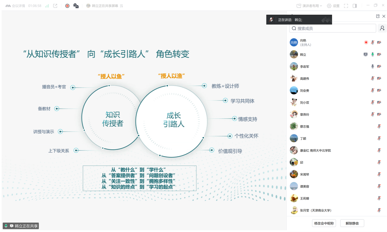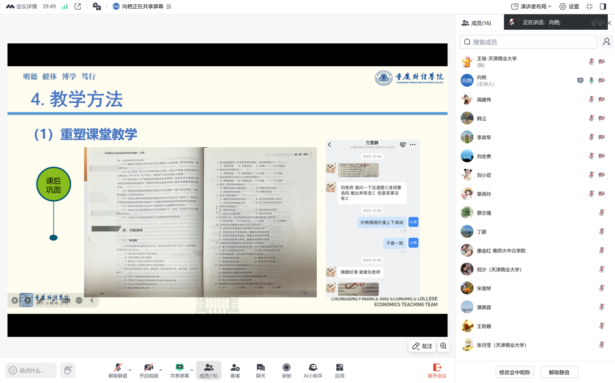 会上,重庆财经学院李政军教授、向艳老师详细分享了该校政治经济学课程组在教学设计、课堂教学方式重塑等方面的宝贵经验。宁夏大学的韩立教授介绍了其教学团队在使用AI技术促进教学改革方面所做的多项工作,分享了他们在智慧课程建设方面的宝贵经验。91av