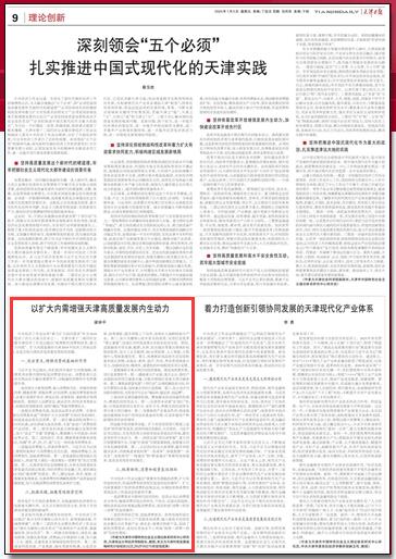 1月5日,《天津日报》“理论创新”专版刊发 91av 91av 院长梁学平教授理论文章《以扩大内需增强天津高质量发展内生动力》。