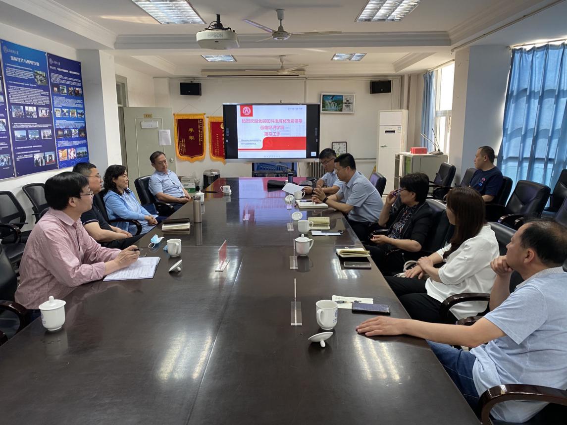北辰区发改委主任高俊杰对该区区域规划,产业布局和四大主导产业发展情况等进行介绍,希望借助学校和学院在科学研究和服务社会方面的优势加强合作。北辰区科技局局长丁庆兰介绍了北辰区“十四五”期间积极支持生物医药、高端装备制造等产业情况,并就科技成果转化、校企科技服务等做了讲解。梁学平介绍了学院整体情况和科研基础、研究优势;李海伟介绍了学院两个高校智库在服务地方经济社会中的情况,吕成捷就双方加强交流合作提出了总体要求和希望。